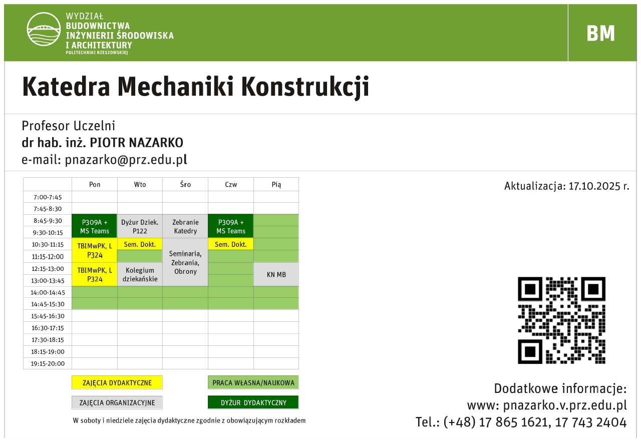 Rozkład zajęć w roku akad. 2025/2026 (semestr zimowy):